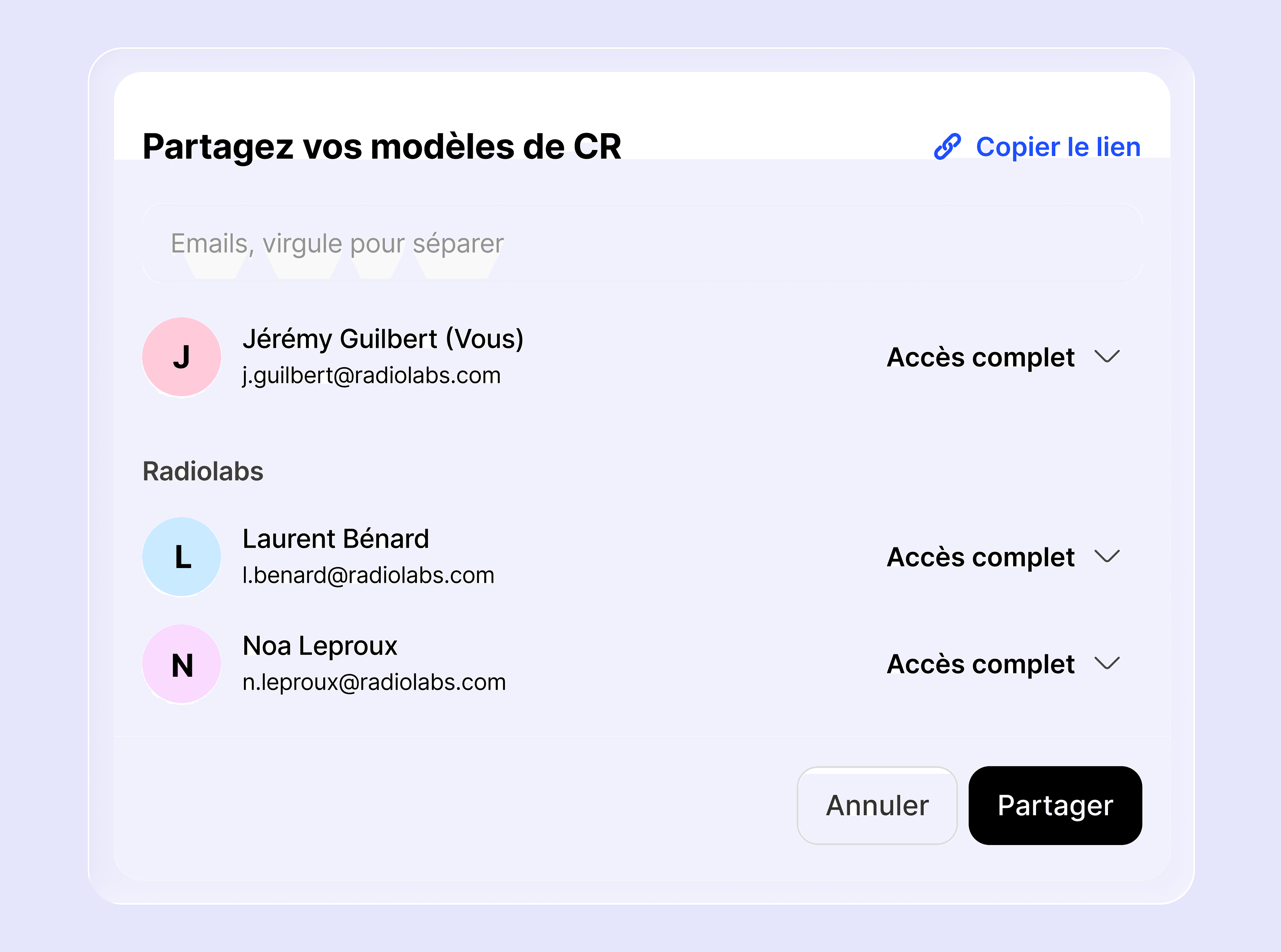 Partagez vos CR types avec les membres de votre organisation