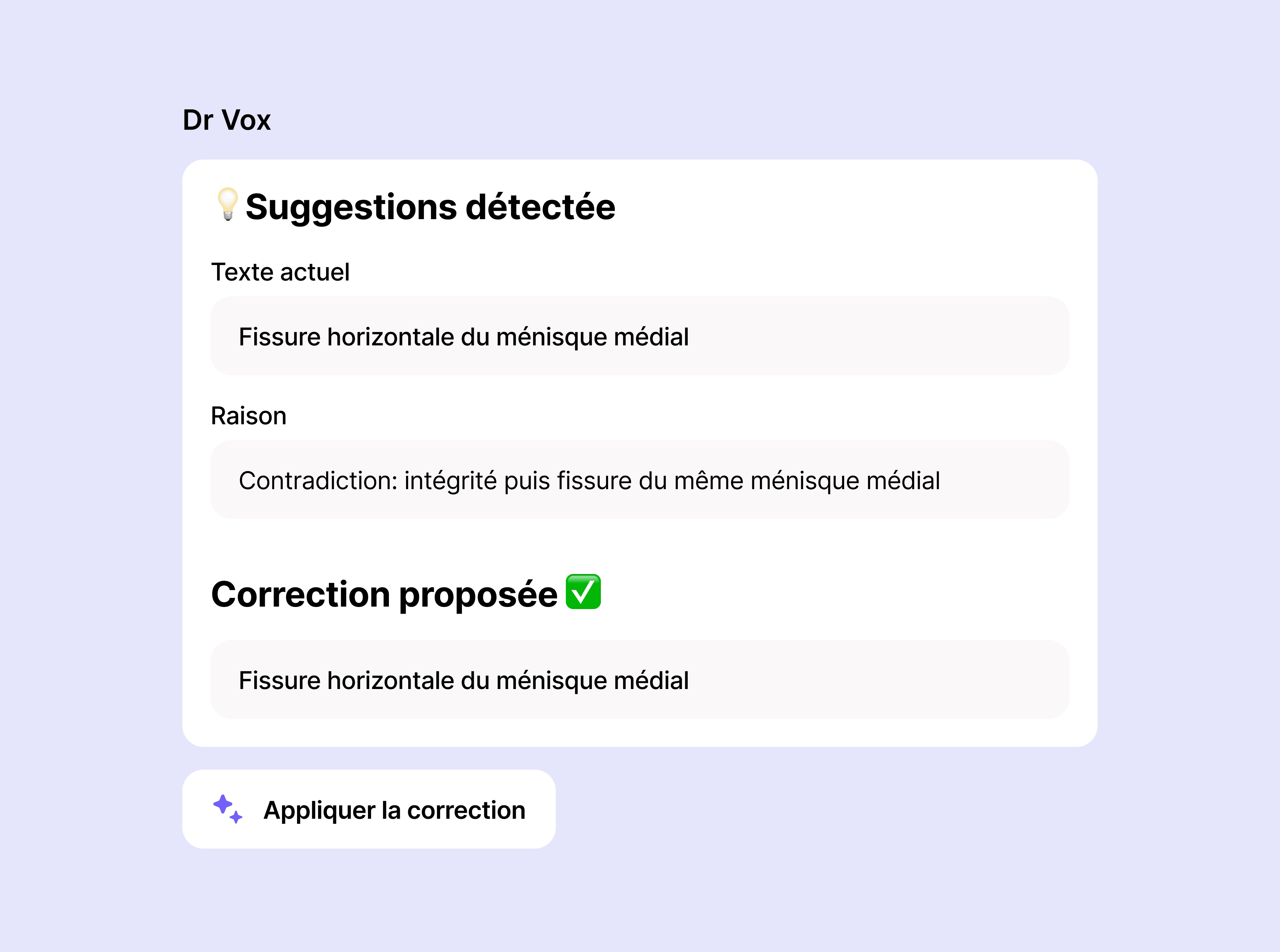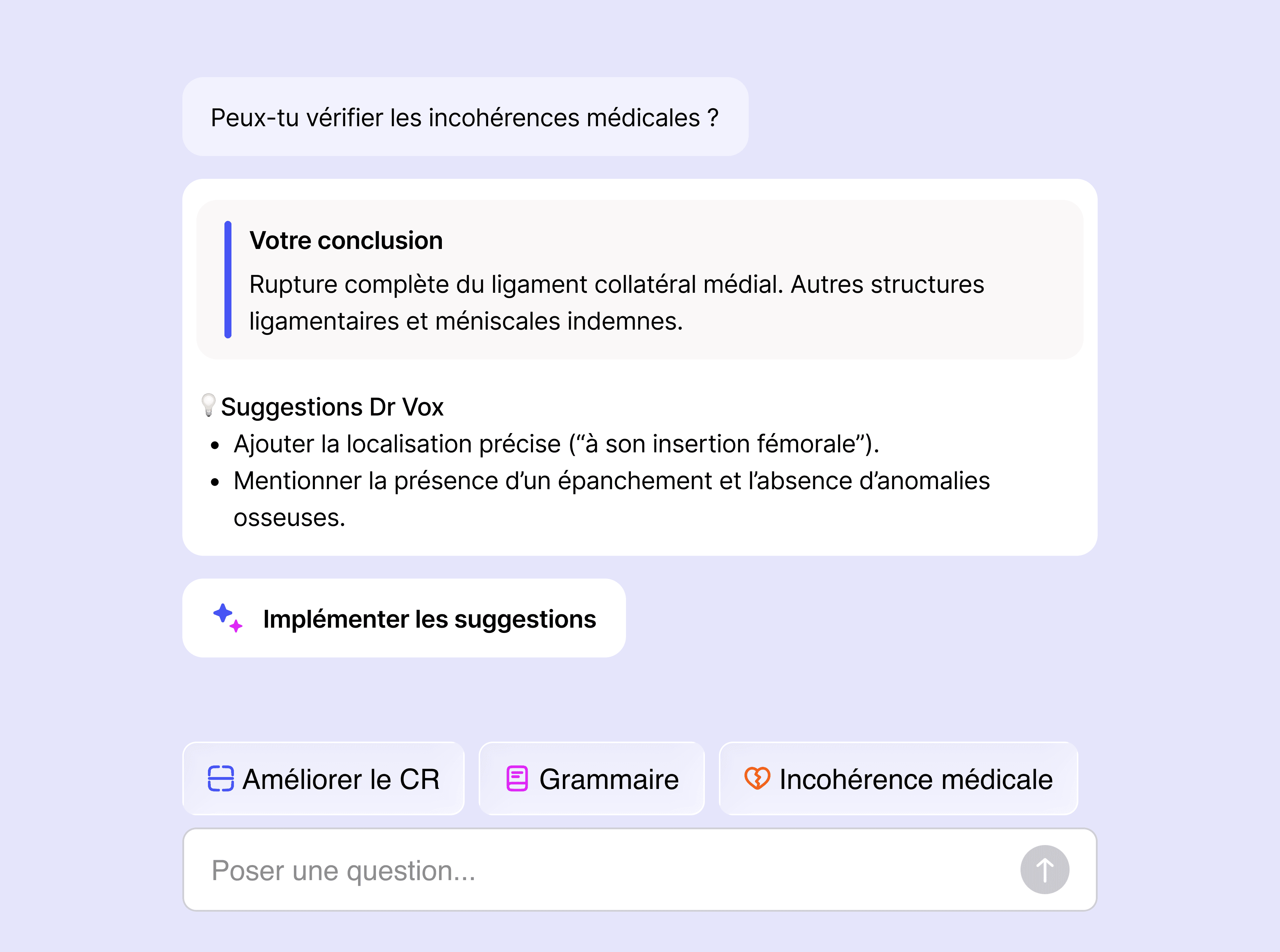 Demandez tout au Dr Vox, il vous répondra: Mise en forme automatique, suggestions d'amélioration, orthographe, incohérences médicales. Plus rien ne peut vous échapper.